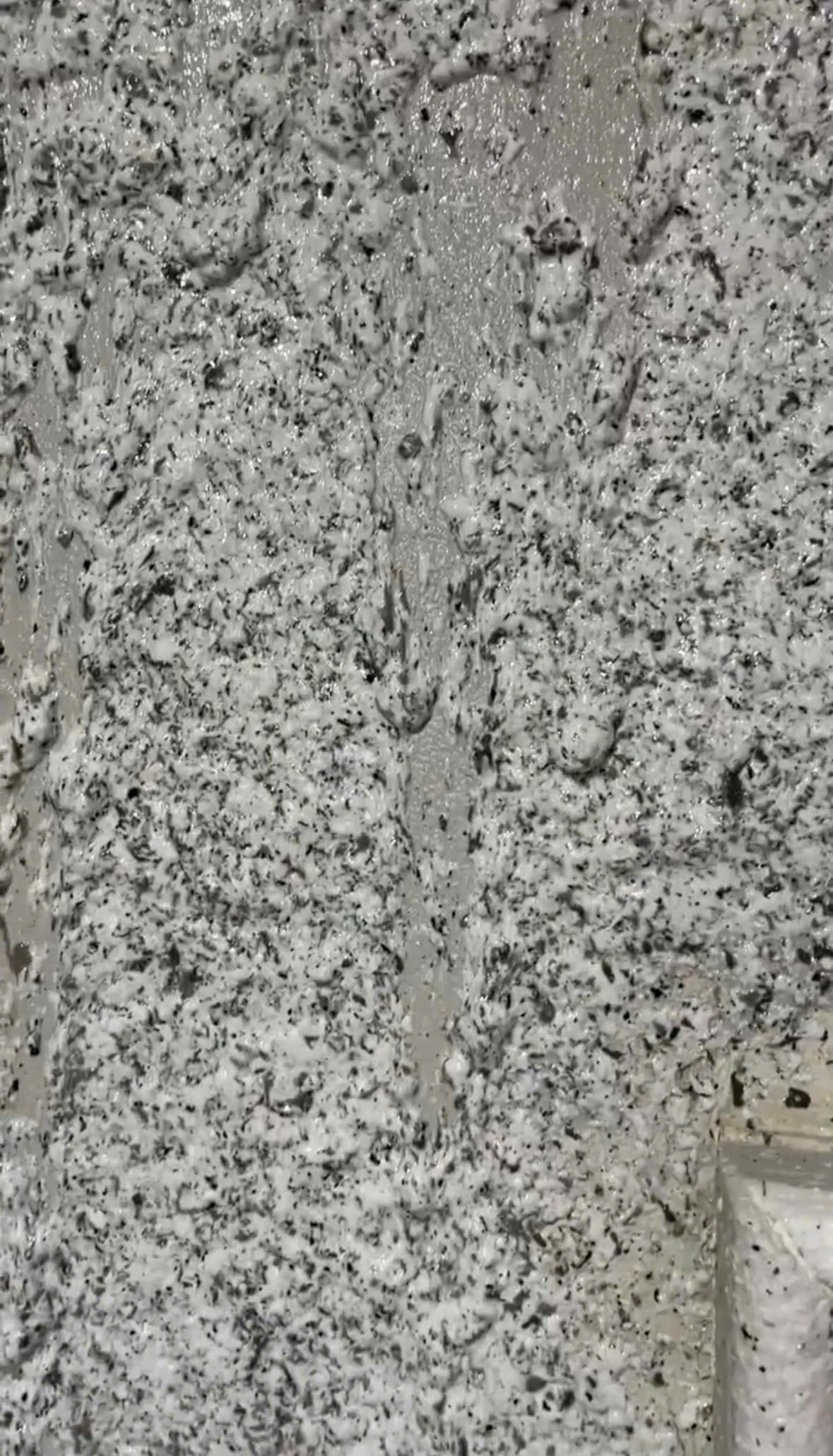 Chảy xệ là lỗi xảy ra khi vật liệu sơn không được kiểm soát tốt trong quá trình phun, khiến lớp sơn chảy thành dòng hoặc tụ lại tại một số vị trí nhất định. Điều này làm cho bề mặt hoàn thiện mất đi sự sắc nét của vân đá, độ dày không đồng đều và giảm đáng kể tính thẩm mỹ của công trình. Lỗi chảy xệ thường dễ thấy ngay sau khi thi công.
